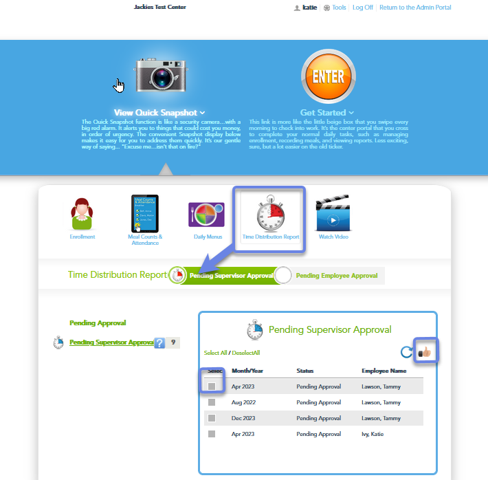 3. Click the check box next to the TDRs to approve. Once you’ve checked the boxes, click the thumbs up.