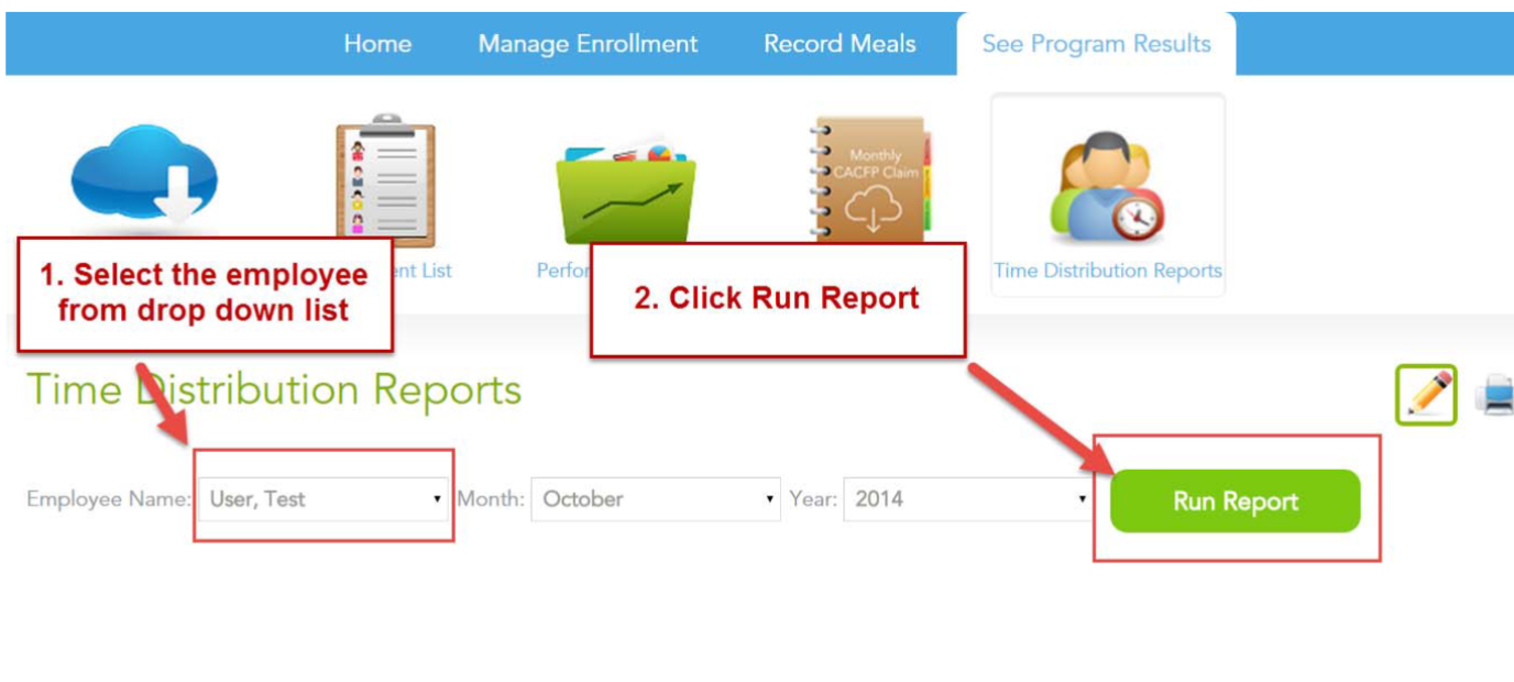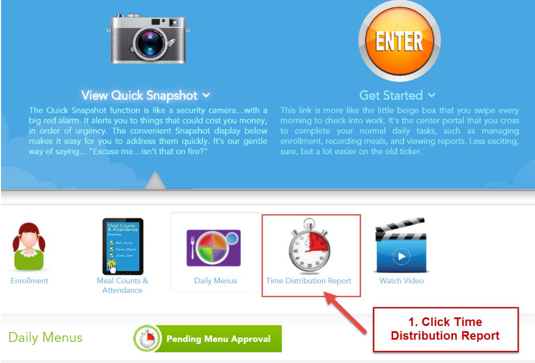 - Click on the Time Distribution Report icon from your MFC Quick Snapshots Dashboard.