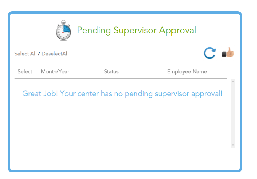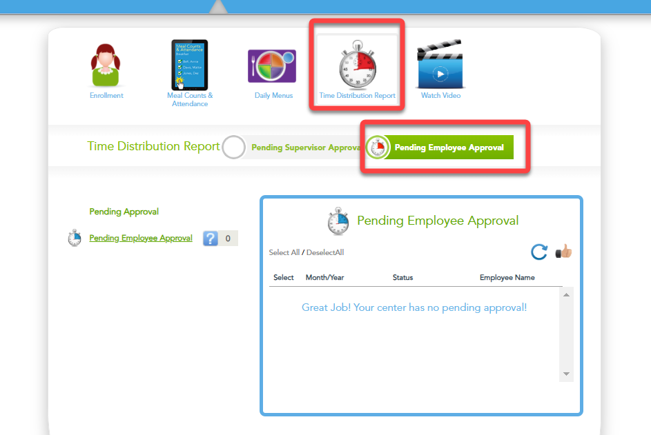 You will see this screen when all time distribution reports have been approved.