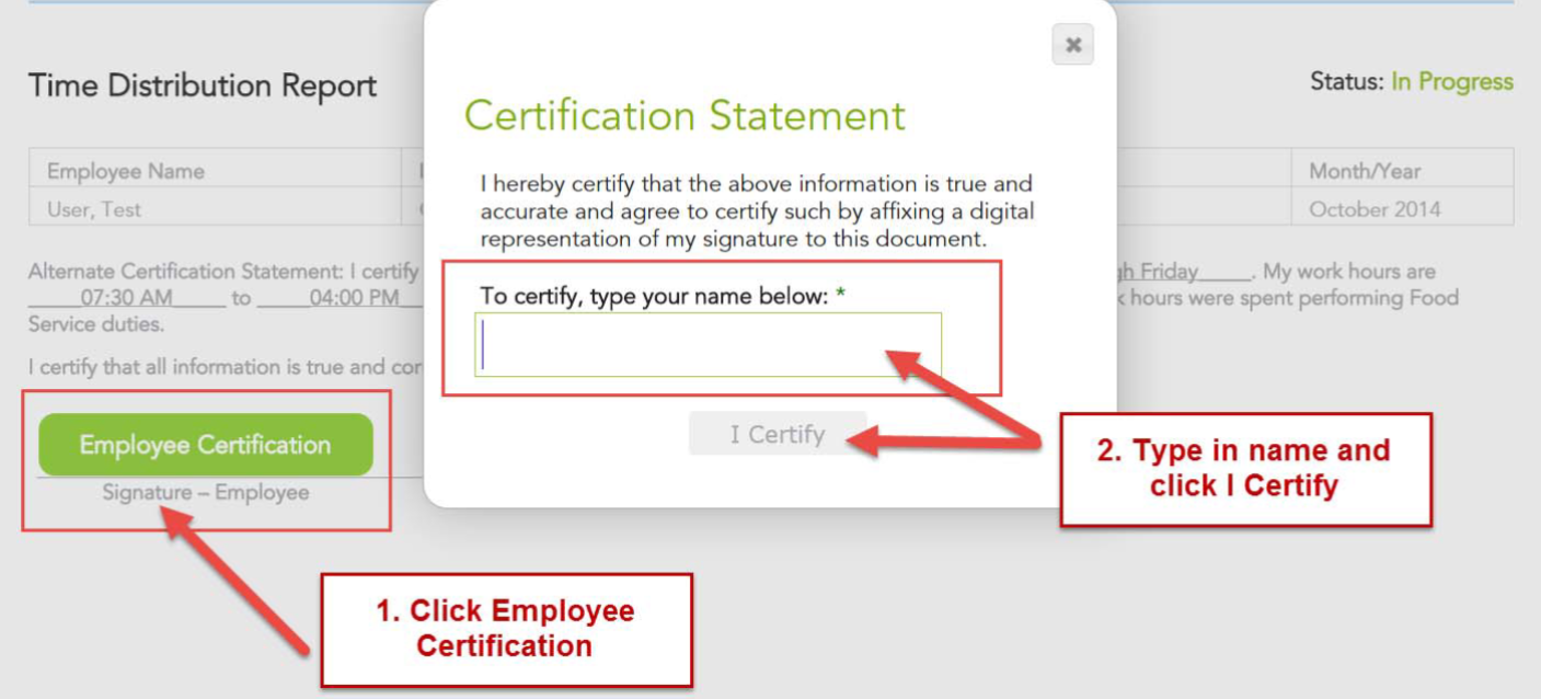 6. Have the employee certify the record by scrolling to the bottom of the report and clicking Employee Certification.