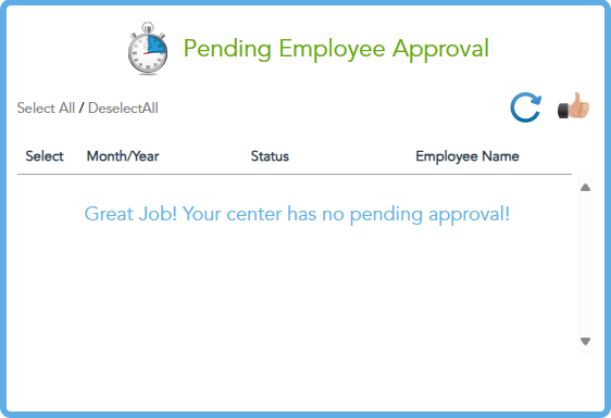 Under Time Distribution Report, click Pending Supervisor Approval to see if any TDRs are needing a supervisor’s signature. Use the checkbox to select pending TDRs and click the thumbs-up button to approve them.
